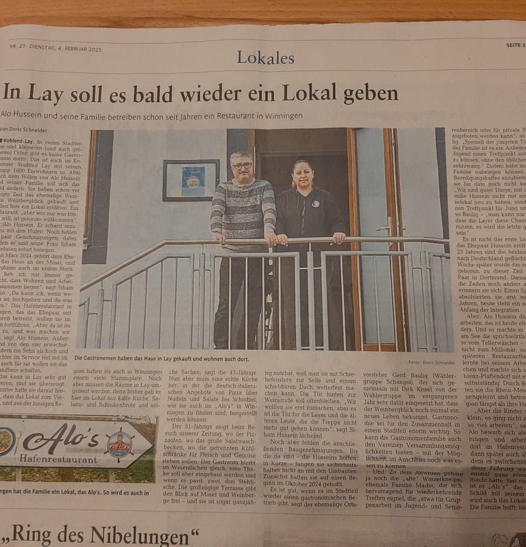 Nach dem Erfolg unseres ersten Restaurants Alo’s Hafenrestaurant in Winningen, haben wir beschlossen, unsere Leidenschaft für gutes Essen und Gastfreundschaft auch nach Koblenz-Lay zu bringen.